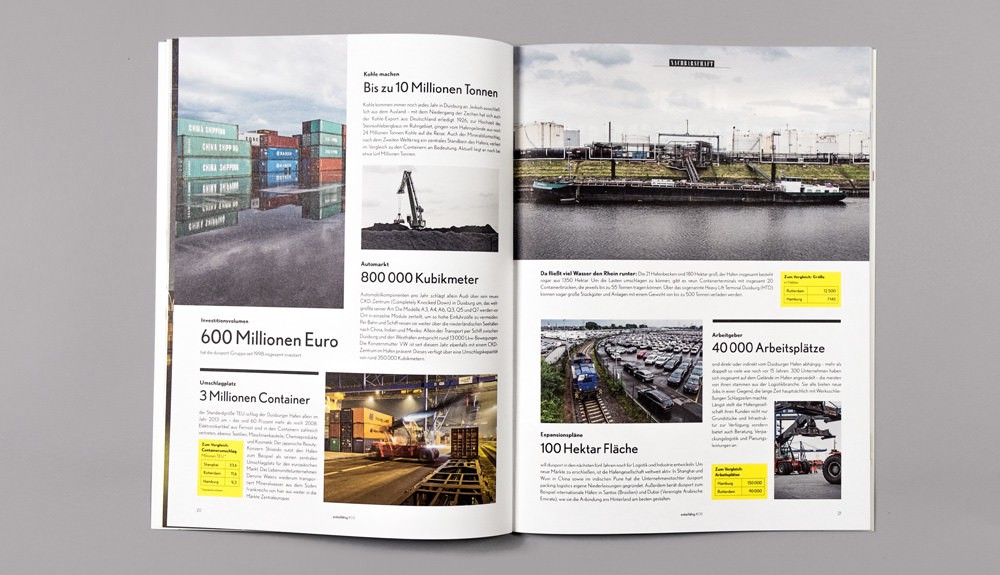 ...mit dem sich mal eben so 40 Tonnen durch die Gegend wuchten lassen. Obwohl uns das Wetter nicht gnädig war und es die meiste Zeit nur so aus Kübeln zu schütten schien, entstand für das preisgekrönte Unternehmensmagazin Enkelfähig aus dem Hause Haniel eine starke Bildstrecke über den größten Binnenhafen Europas in Duisburg.